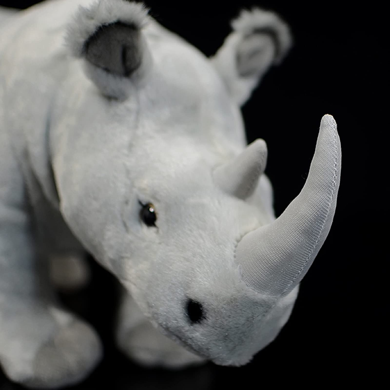 Dieses Nashorn-Plüschtier ist handgefertigt. Es ist eine Figur, die gut mit Baumwolle ausgestopft ist, was bedeutet, dass sie leicht matschig ist. Das Fell ist glatt und weich, die Gesamtform ist realistisch und das Gesichtsdesign ist einzigartig, sehr realistisch. Die intelligenten Augen machen es lebendiger und lebensechter.