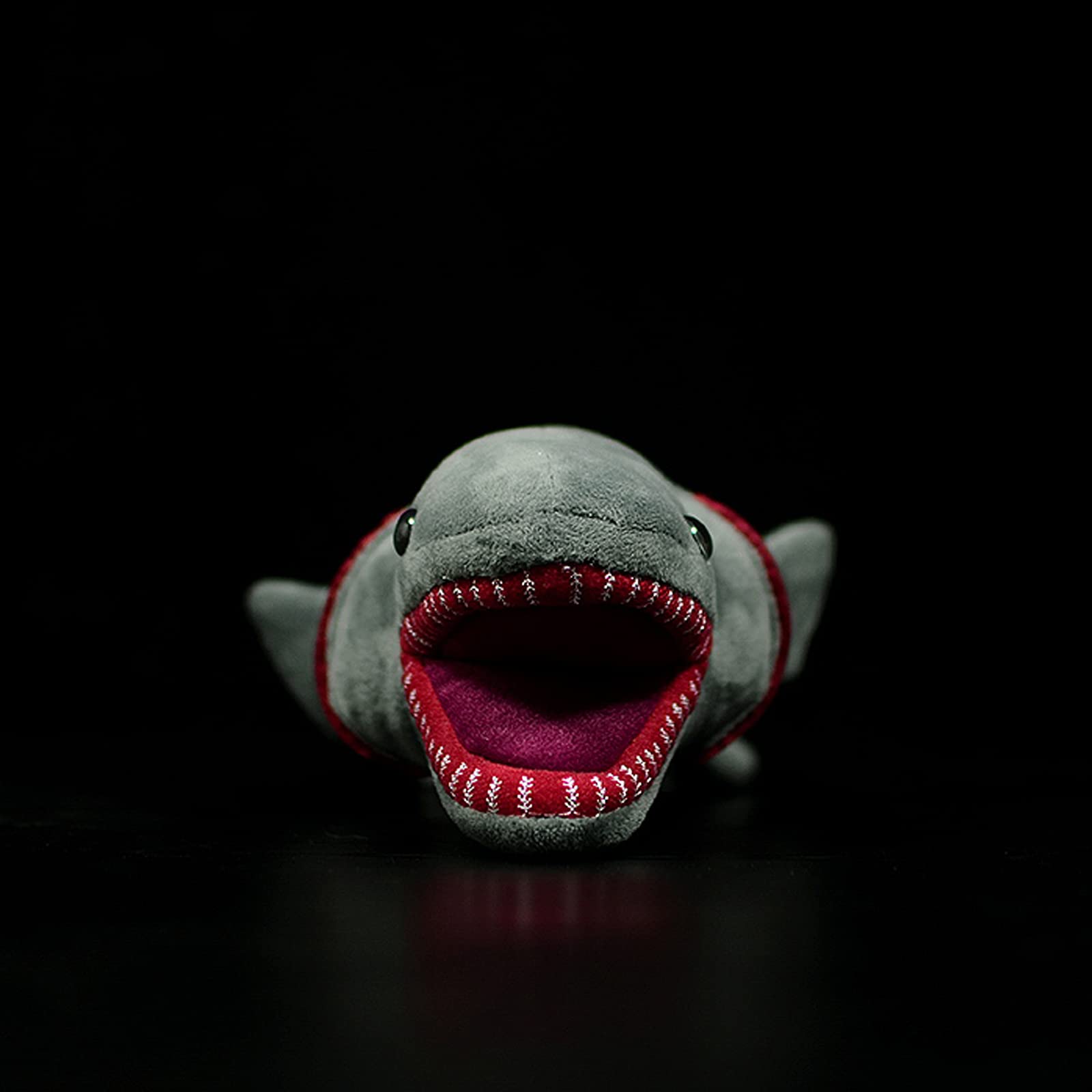 This Frilled Shark plush toy is handmade. It is a figure stuffed well with cotton which means it's slightly squishy. its the fur is smooth and soft, the overall shape design is realistic, and the face design is unique, very realistic. The smart eyes make it more vivid and lifelike.